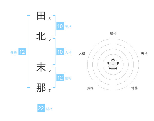 田北 末那さんを姓名の画数から五運を鑑定