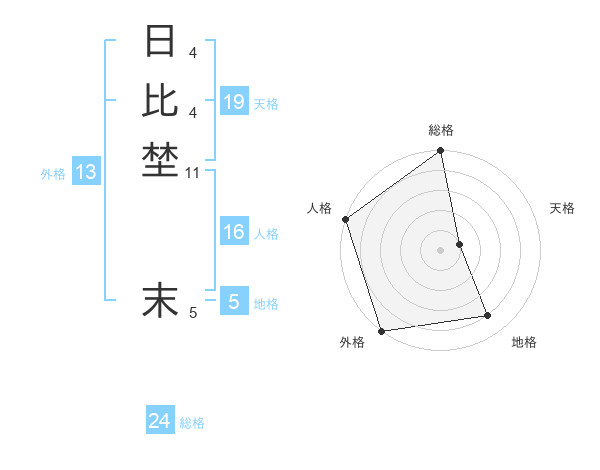 家系が持つ宿命的な運勢を表します。祖先から受け継いだ苗字ですので自分の力が及びません。家柄を象徴します。
