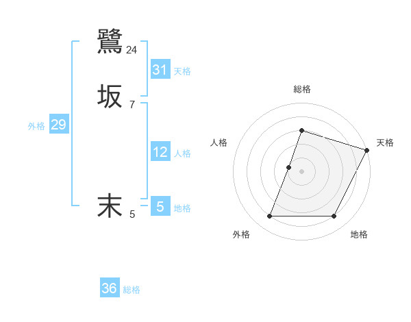 鷺坂 末さんの天格は31画の5点!