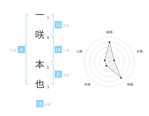 一咲 本也さんの総格は18画の4点!