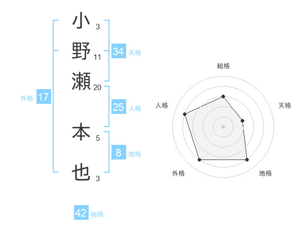 小野瀬 本也さんを姓名の画数から五運を鑑定