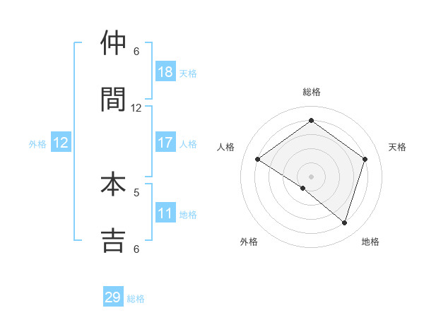 仲間 本吉さんを姓名の画数から五運を鑑定