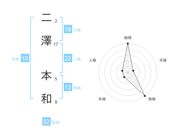 二澤 本和さんの総格は32画の5点!