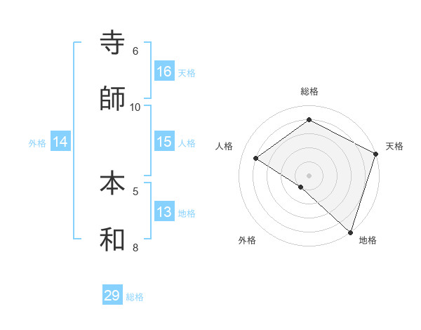 寺師 本和さんの総格は29画の4点!