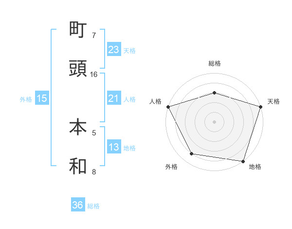 町頭 本和さんの地格は13画の5点!