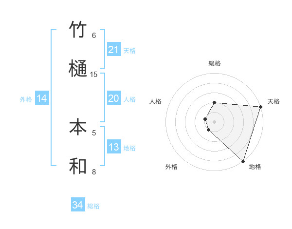 竹樋 本和さんを姓名の画数から五運を鑑定
