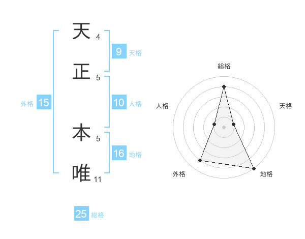 天正 本唯さんの総格は25画の4点!
