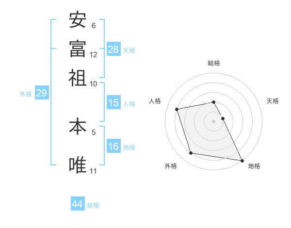 安富祖 本唯さんを姓名の画数から五運を鑑定