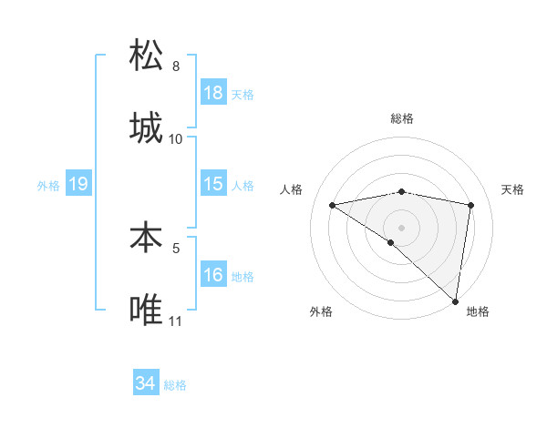 松城 本唯さんの総格は34画の2点!