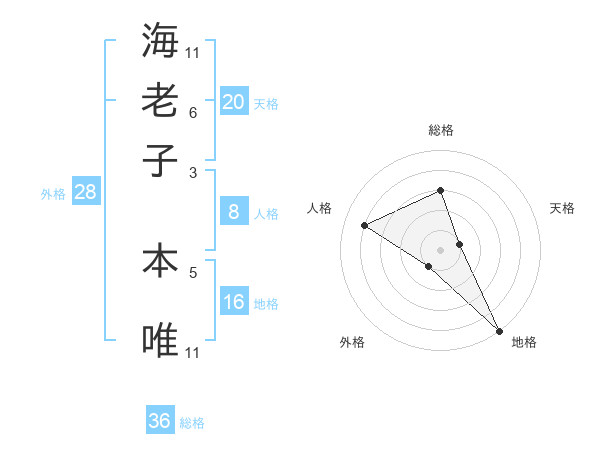 海老子 本唯さんの天格は20画の1点!