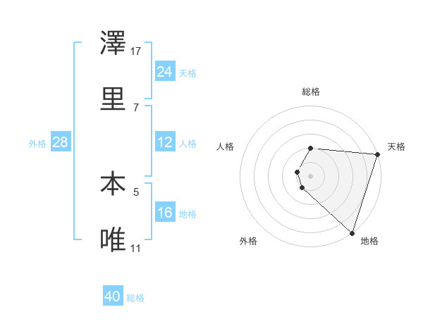 澤里 本唯さんの天格は24画の5点!