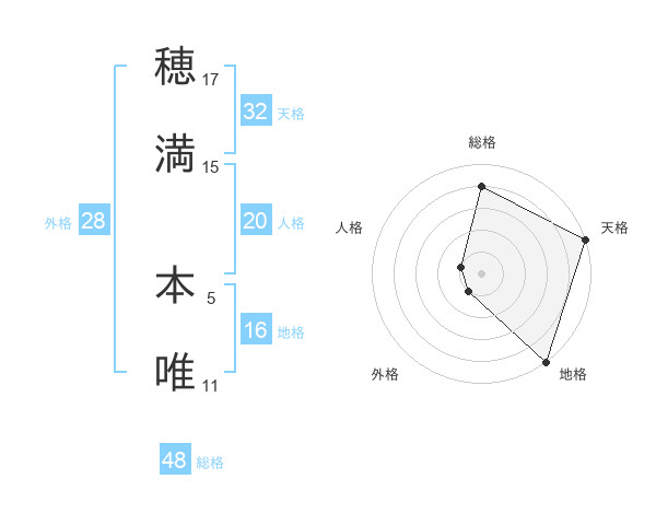 穂満 本唯さんの天格は32画の5点!