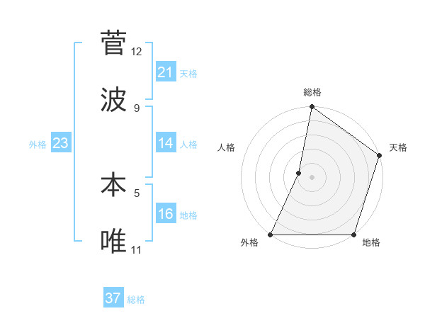 菅波 本唯さんの総格は37画の5点!