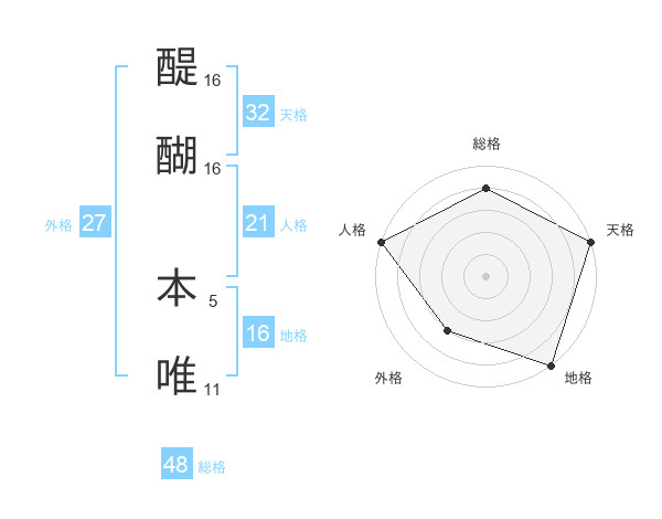 醍醐 本唯さんの天格は32画の5点!