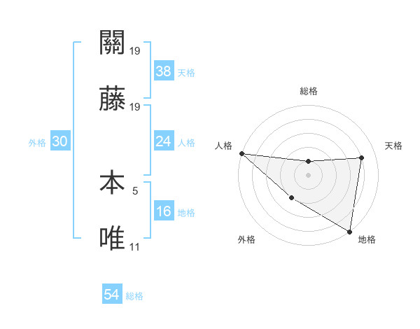 關藤 本唯さんの天格は38画の4点!