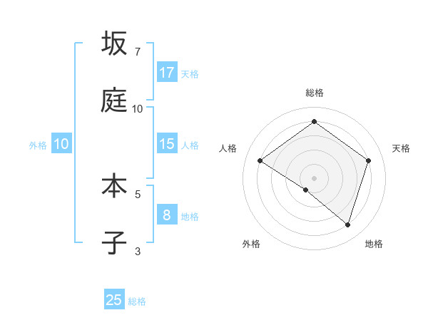 坂庭 本子さんの総格は25画の4点!