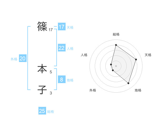 篠 本子さんの総格は25画の4点!