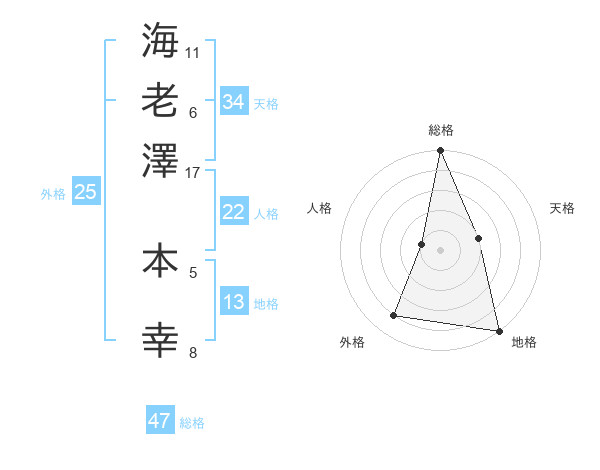 海老澤 本幸さんの総格は47画の5点!