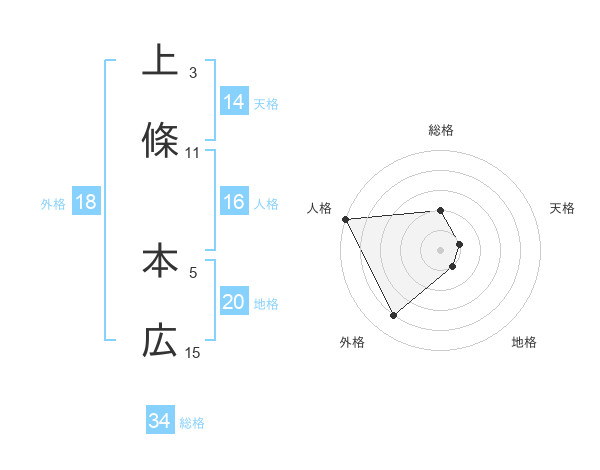 上條 本広さんの地格は20画の1点!