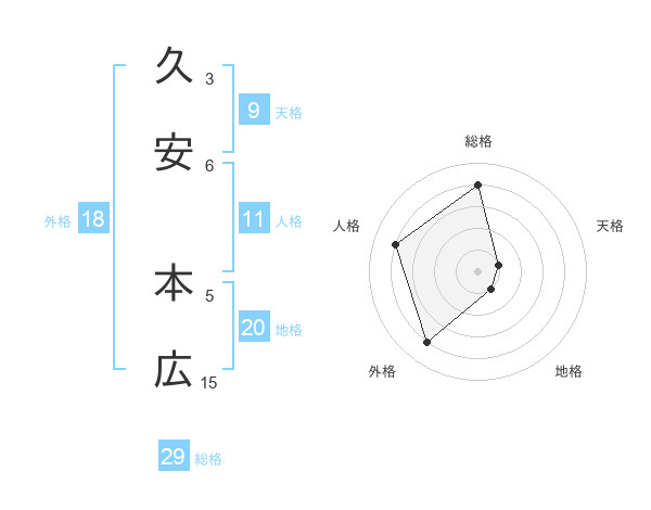 久安 本広さんの総格は29画の4点!