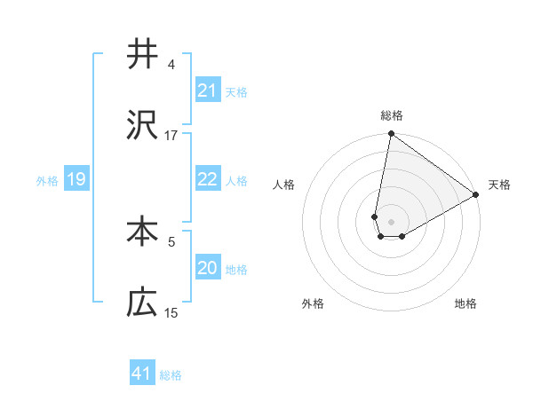 井沢 本広さんの総格は41画の5点!