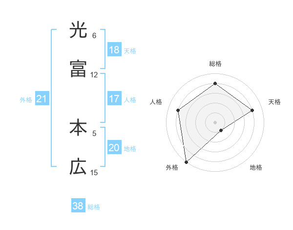 光富 本広さんの総格は38画の4点!