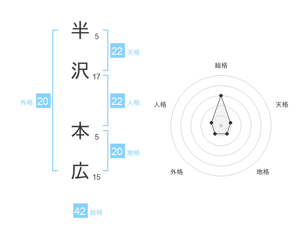 半沢 本広さんの地格は20画の1点!