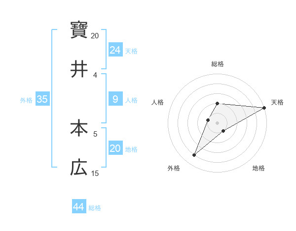 寶井 本広さんの天格は24画の5点!
