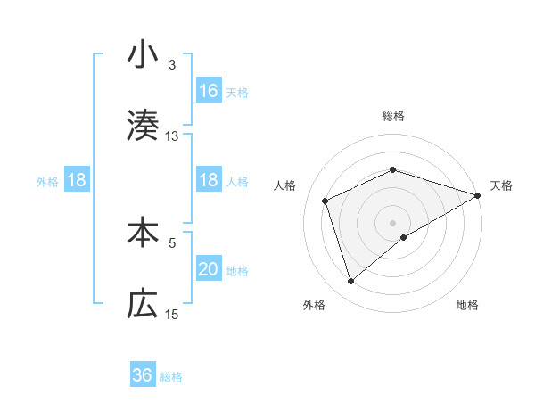 小湊 本広さんの天格は16画の5点!