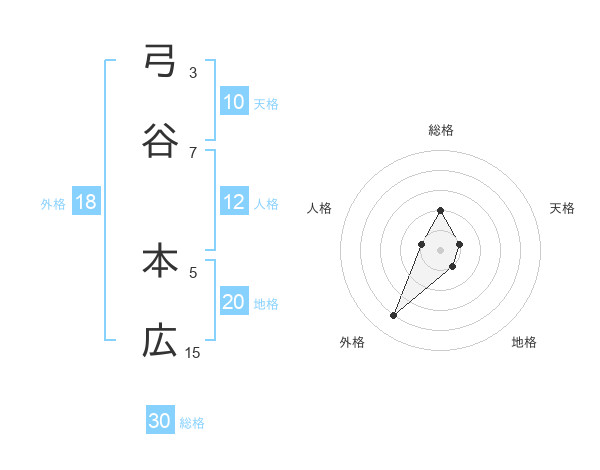 弓谷 本広さんの総格は30画の2点!