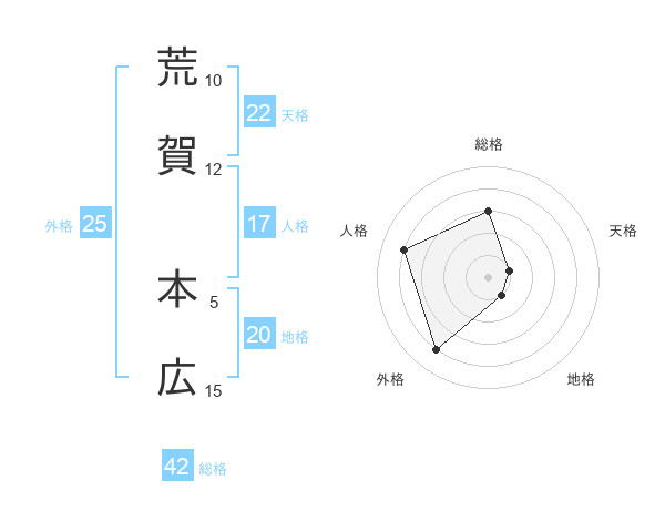 荒賀 本広さんを姓名の画数から五運を鑑定