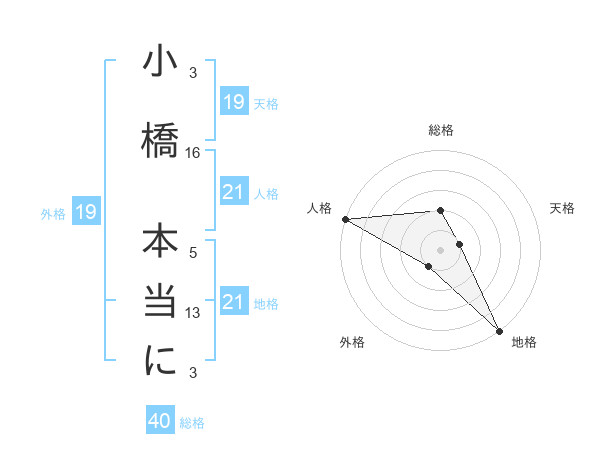 小橋 本当にさんを姓名の画数から五運を鑑定