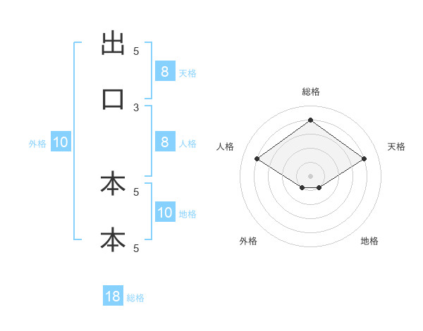 出口 本本さんの総格は18画の4点!