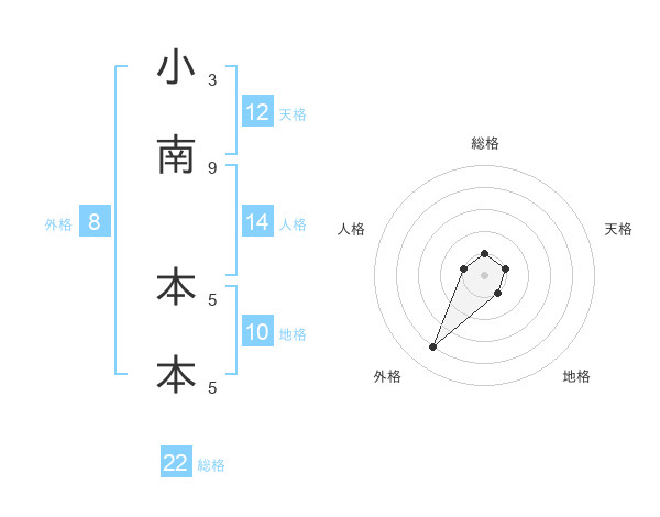 小南 本本さんの総格は22画の1点!