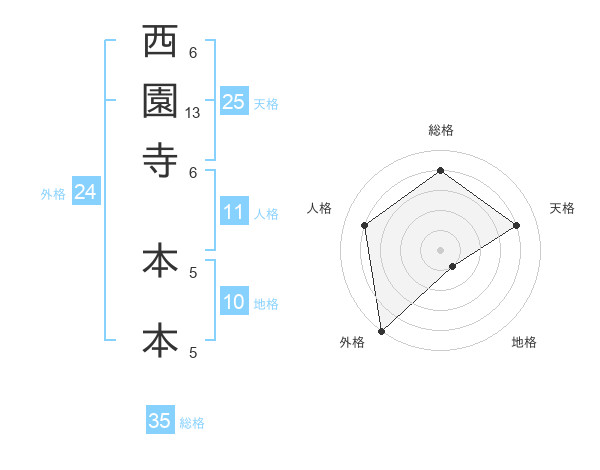 西園寺 本本さんを姓名の画数から五運を鑑定