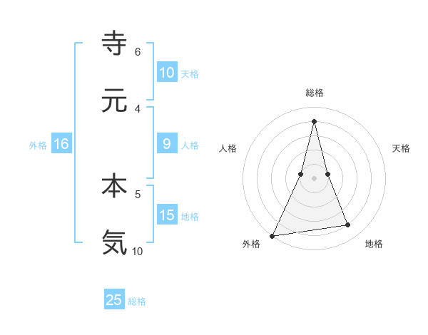 寺元 本気さんの総格は25画の4点!