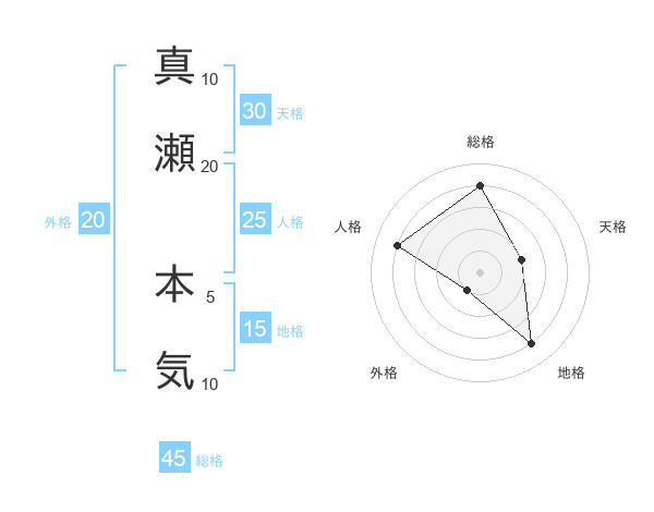 真瀬 本気さんを姓名の画数から五運を鑑定