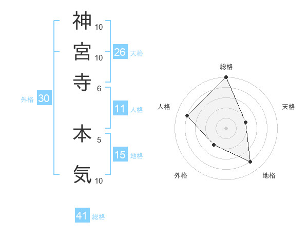 神宮寺 本気さんを姓名の画数から五運を鑑定