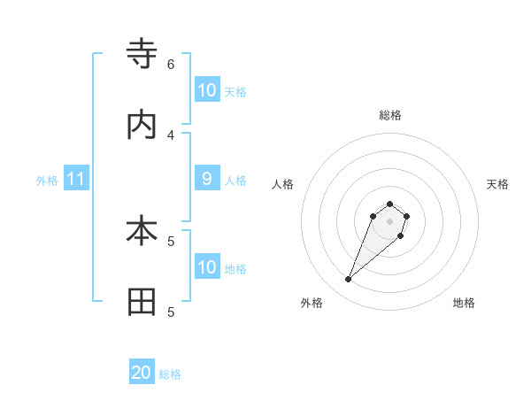 寺内 本田さんの総格は20画の1点!