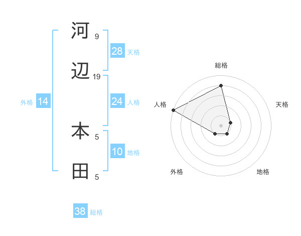 河辺 本田さんの総格は38画の4点!