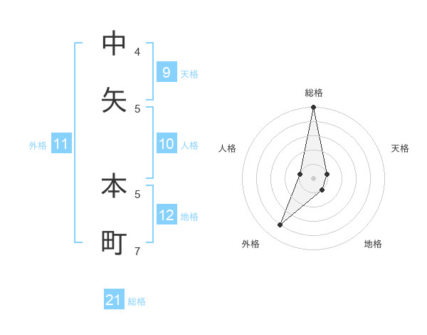中矢 本町さんの総格は21画の5点!