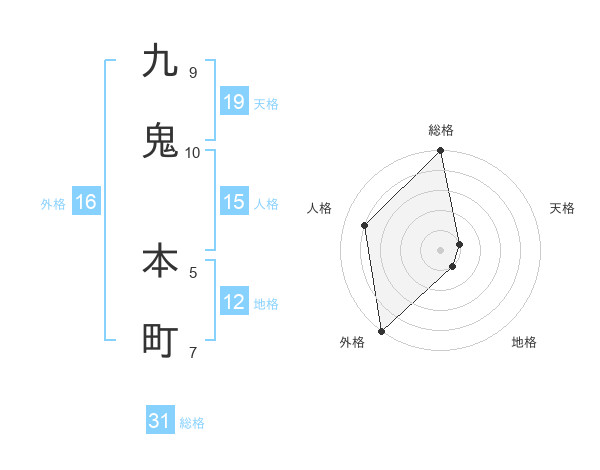 九鬼 本町さんの外格は16画の5点!