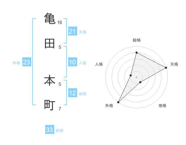 亀田 本町さんの外格は23画の5点!