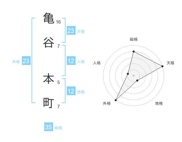 亀谷 本町さんの天格は23画の5点!
