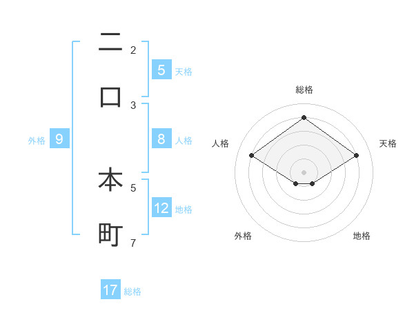二口 本町さんの総格は17画の4点