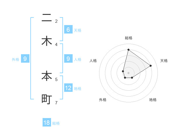 二木 本町さんの総格は18画の4点!