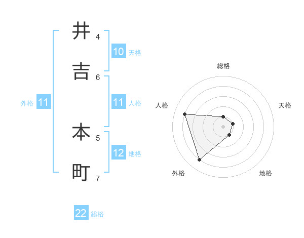 井吉 本町さんの総格は22画の1点!