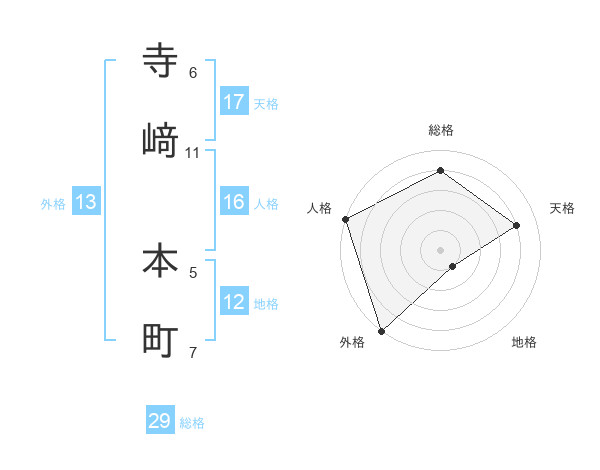 寺﨑 本町さんの総格は29画の4点!