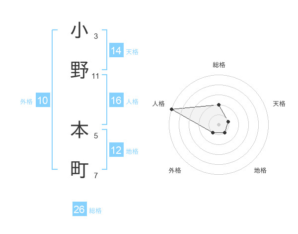 小野 本町さんの総格は26画の2点!