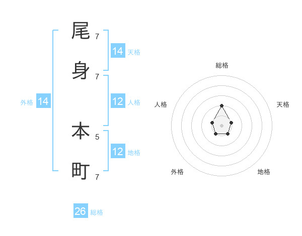 尾身 本町さんの総格は26画の2点!